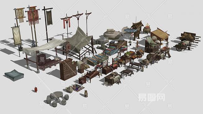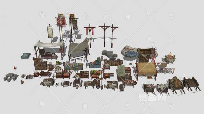 这是古代道具桌椅家具SU模型,元、明、清的戏剧小说中,常有货郎形象出现。旧时交通闭塞,们进城购物极不方便,因而货郎甚多。古代道具桌椅家具SU模型下载_sketchup图大师SKP模型