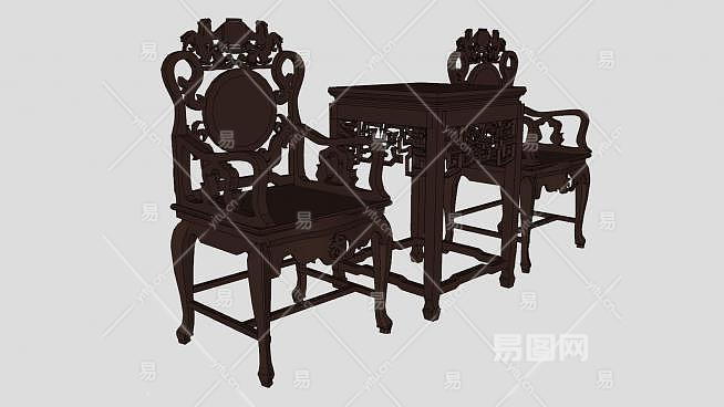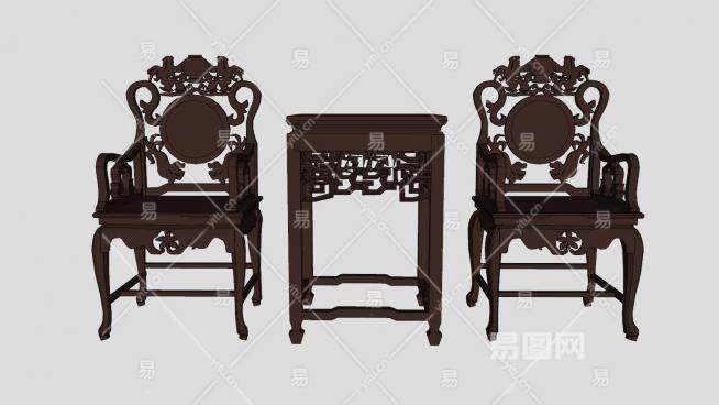 这是中式椅子和中式桌子SU模型,中式家具的风格以含蓄内敛的文化特质吸引众多消费者的青睐,尤以红木家具热潮为现代流行中式家具的典型代表。中式椅子和中式桌子SU模型下载_sketchup图大师SKP模型
