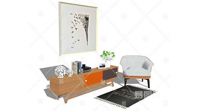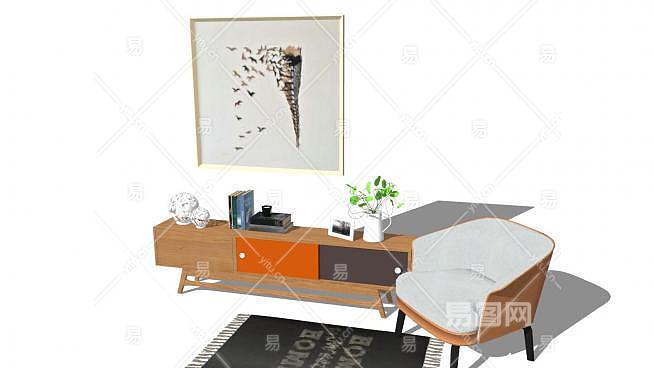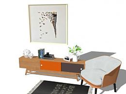 北欧现代边桌矮柜组合SU模型下载_sketchup草图大师SKP模型