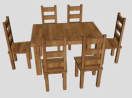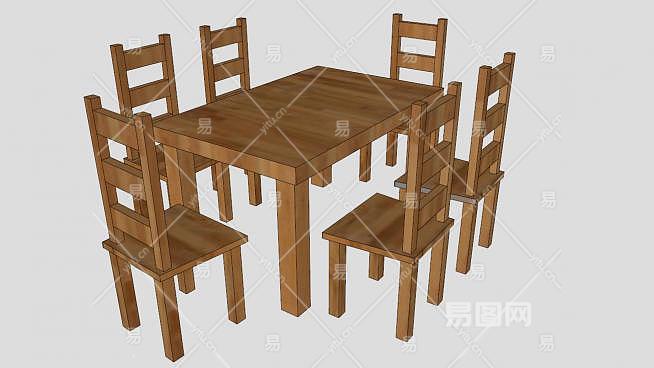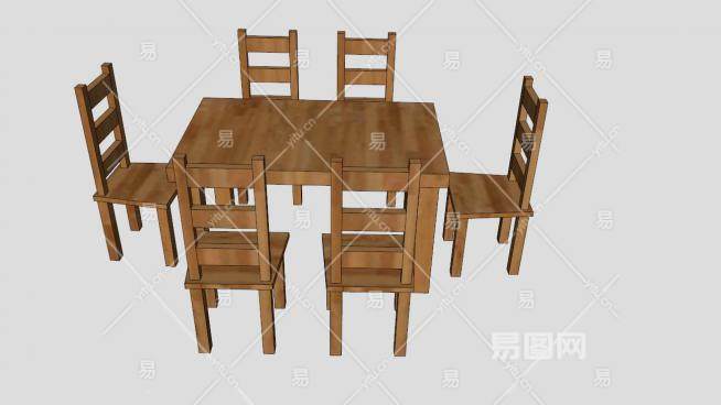 这是实木座椅桌椅SU模型,橡木桌和椅子- 6把椅子。实木座椅桌椅SU模型下载_sketchup图大师SKP模型