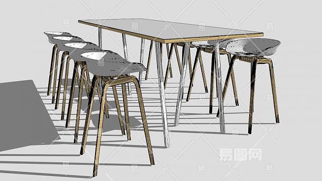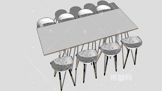 高脚桌椅SU模型下载_sketchup草图大师SKP模型