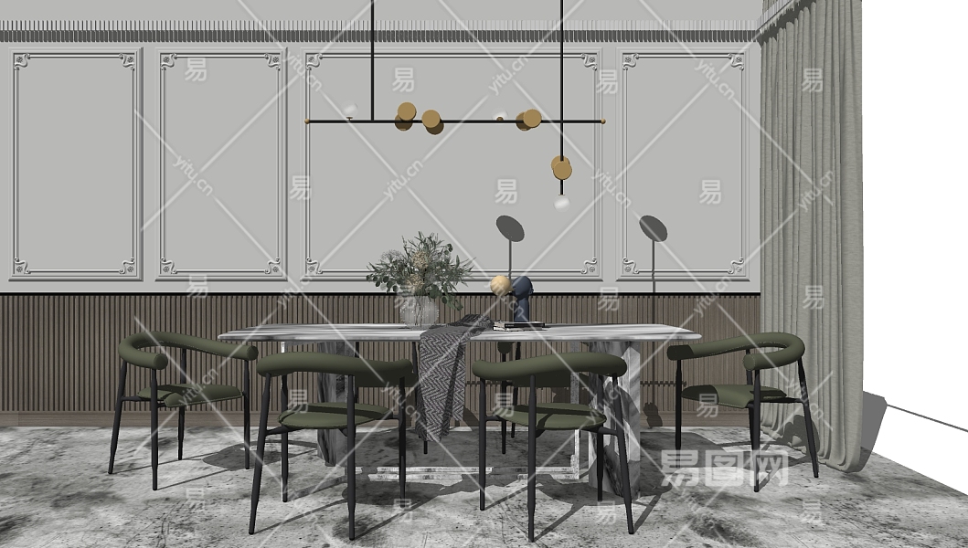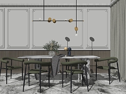 北欧现代餐桌椅子,吊灯su草图模型下载