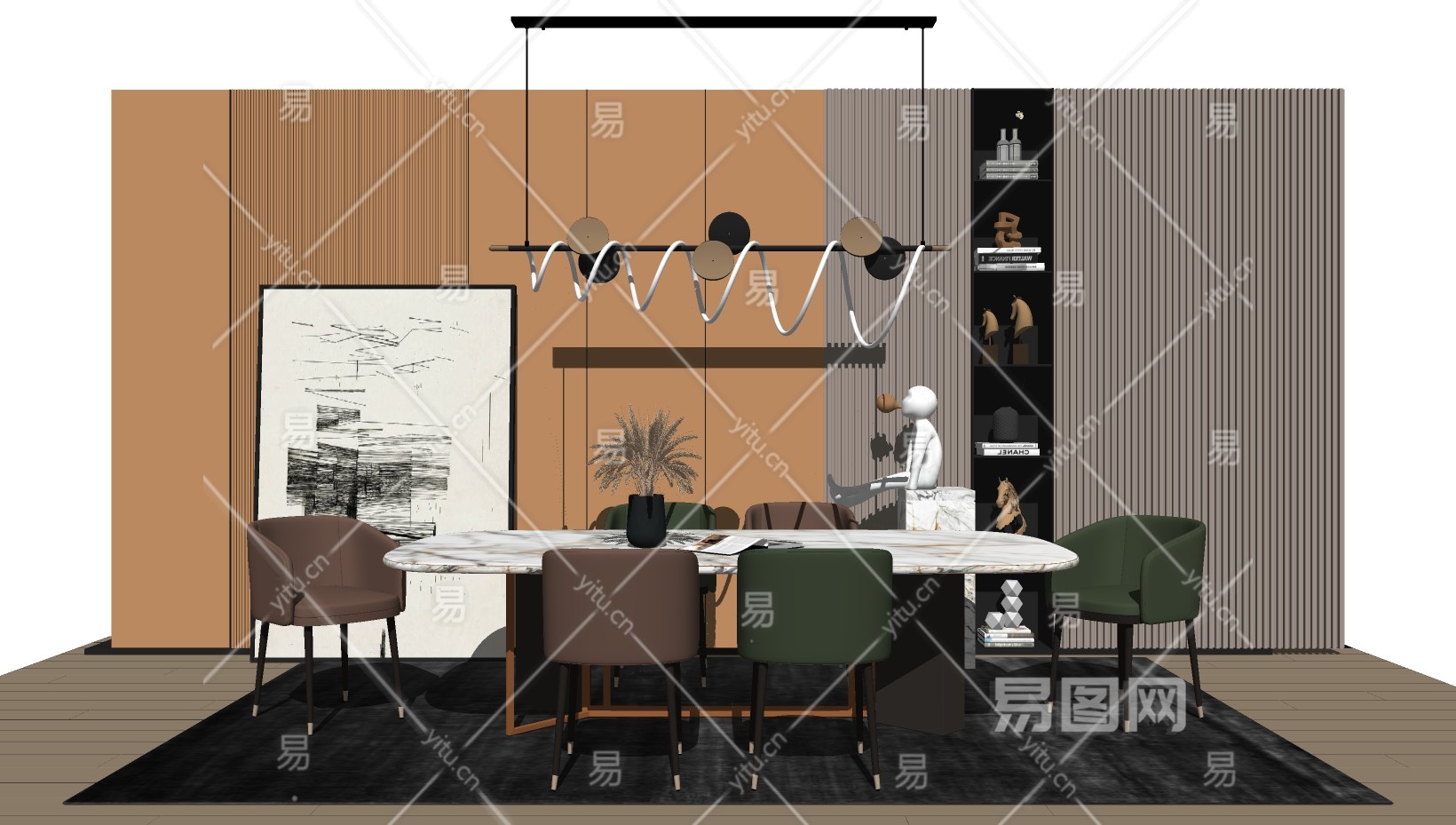 轻奢餐桌椅, ,吊灯su草图模型下载