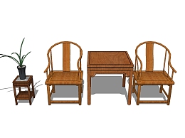 新中式精品桌椅组合草图大师模型,单椅sketchup模型下载