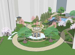 欧式小区景观草图大师模型,小区景观sketchup模型免费下载