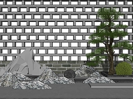 66新中式景观松树雪浪石 新中式庭院景观 景观小品 景观墙su草图模型下载