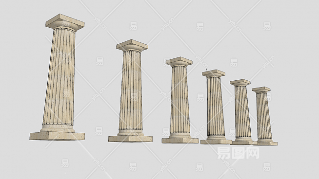 多根陶立克式柱SU模型下载_sketchup草图大师SKP模型