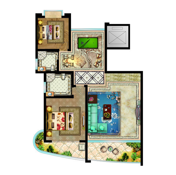 当前的位置:首页 > 效果图 > 家装效果图 > 彩平 > 精装欧式彩平图设计[模型ID:29680]