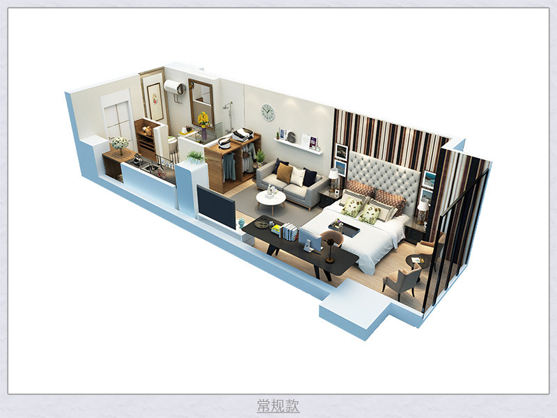小户型公寓3D户型图渲染设计